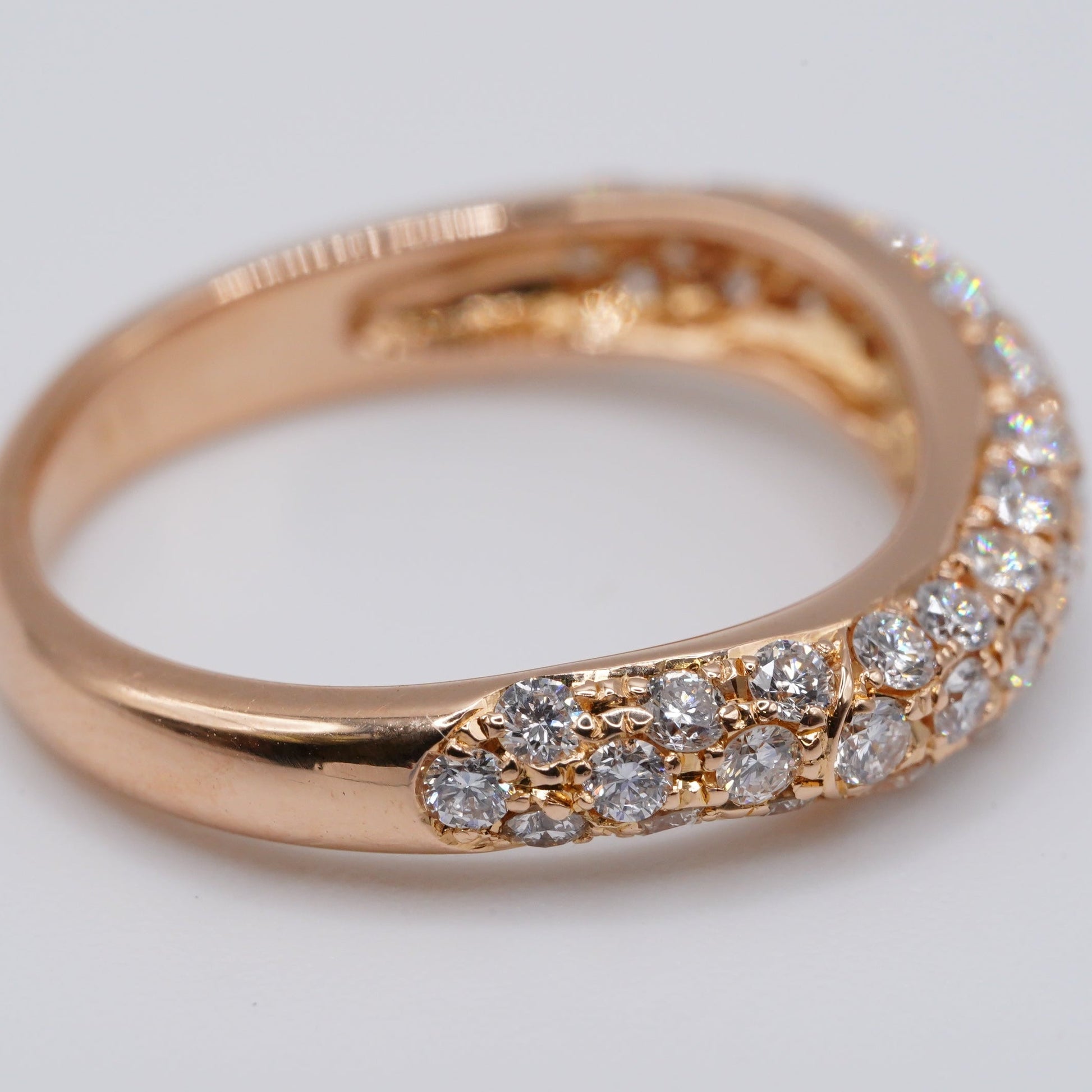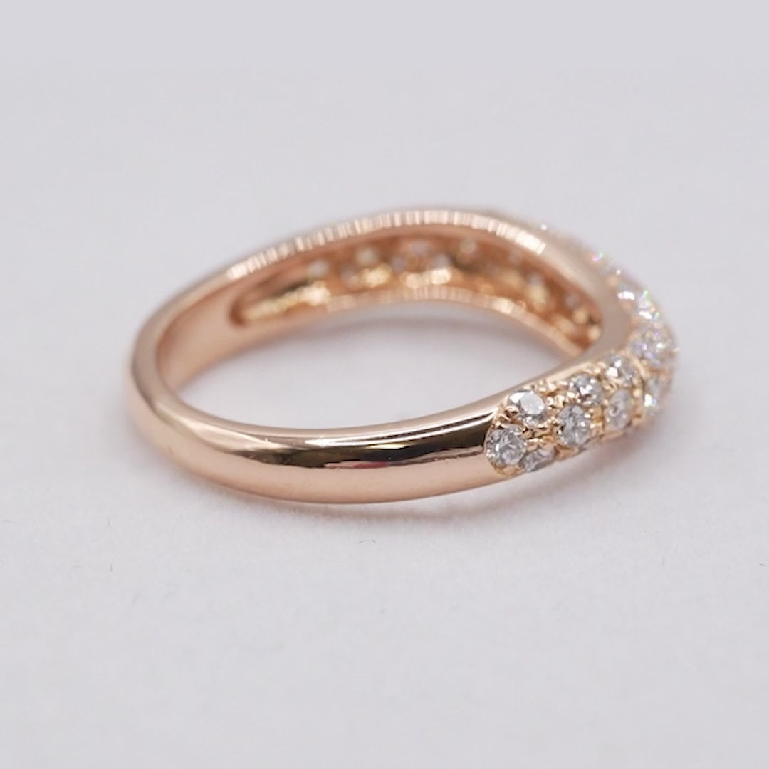 K18 ダイヤモンド パヴェリング 0.686ct ウェーブデザイン 約8号 鑑別書付き