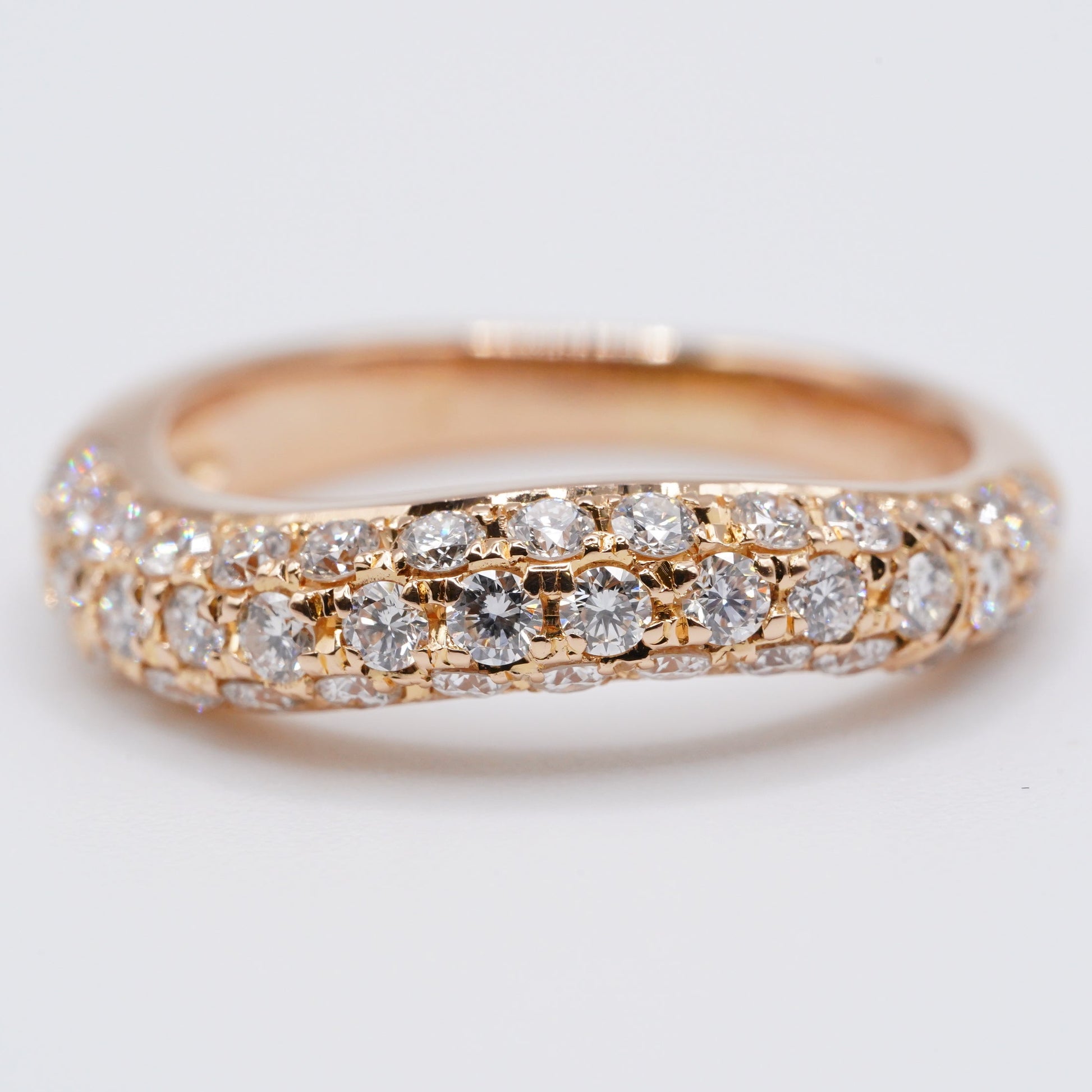 リング全体にダイヤモンドが敷き詰められた(パヴェセッティング)、豪華なデザインです。